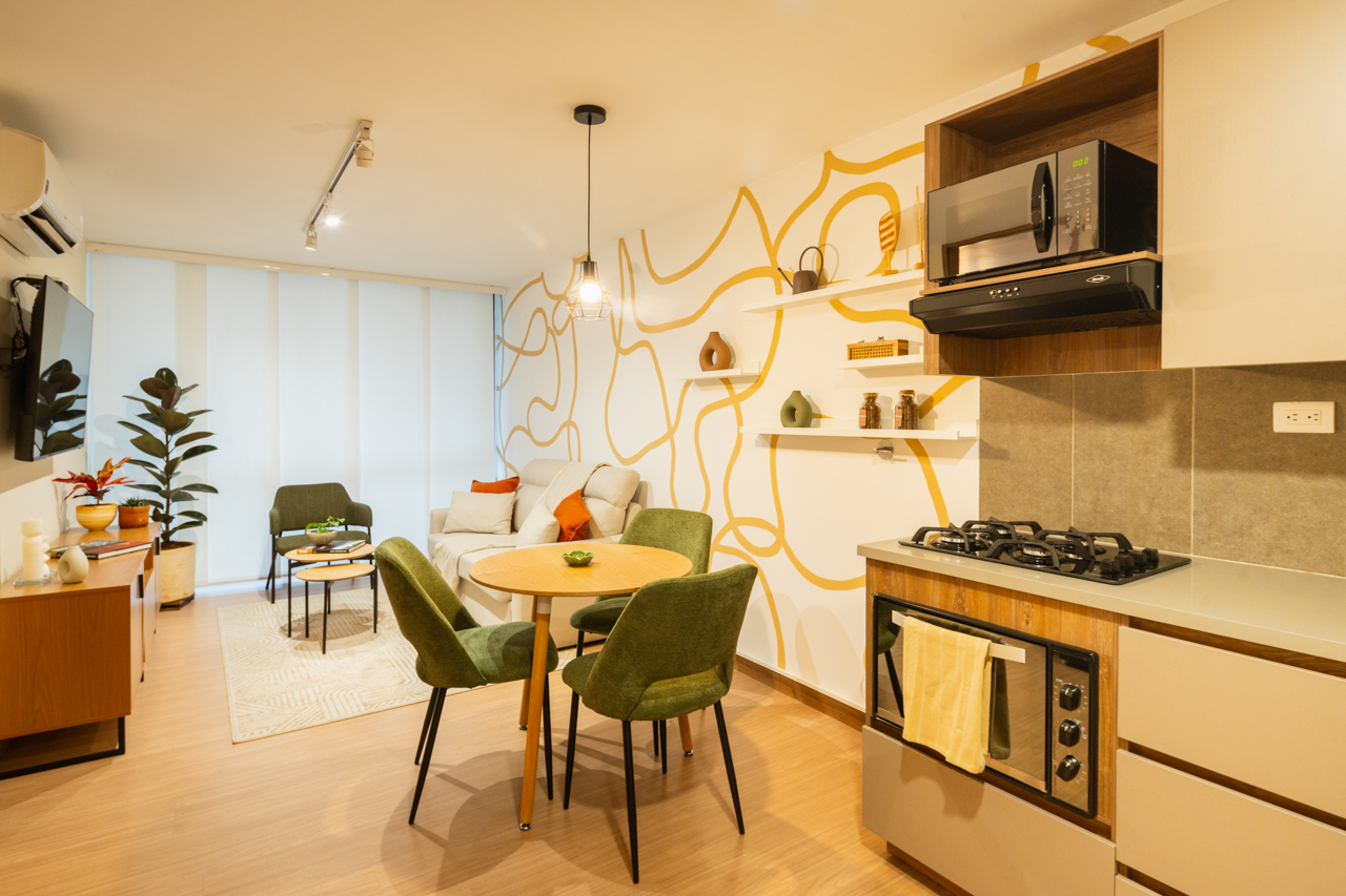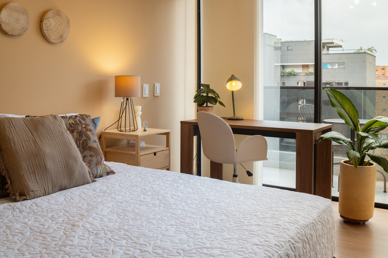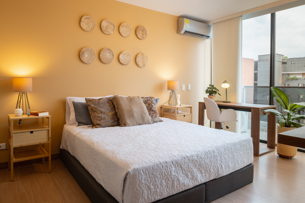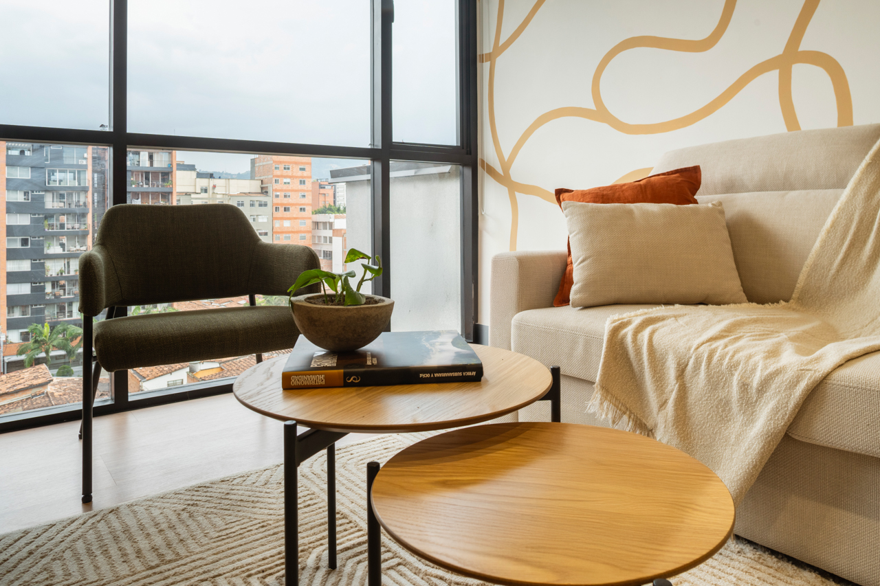 Discover apartments designed for your comfort and enjoyment, with cozy spaces, natural light, and details that reflect the essence of Medellín. Relax, admire the views, and enjoy an unforgettable stay.